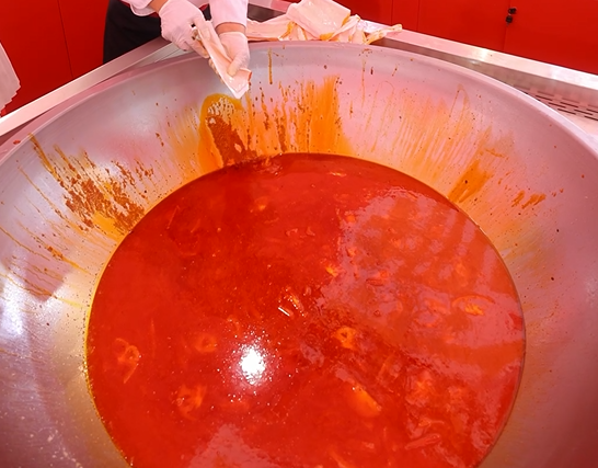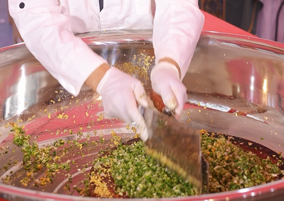 名厨们还现场演示了糟辣火锅的制作过程:将发酵好的糟辣椒倒入锅中,加入姜、蒜、高汤翻炒,待香味完全释放后,加入适量清水煮沸,再放入少许香料提味。整个过程行云流水,香味随着翻炒不断扩散,不少食客围在一旁观看,不时发出赞叹。一位食客说:“原来糟辣火锅的制作这么讲究,今天看了名厨的演示,学到了很多,回家一定要试试。”